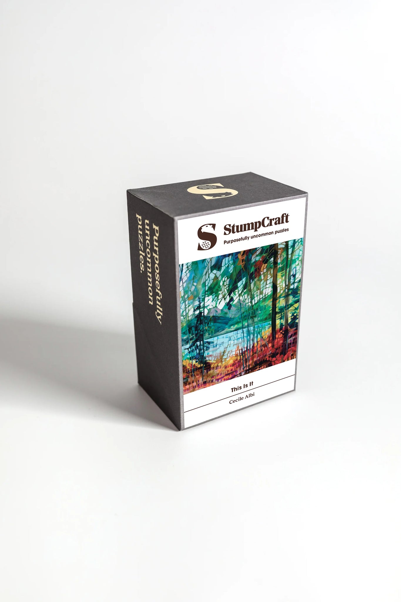 StumpCraft wooden jigsaw puzzles are handcrafted in a small workshop in Calgary, Alberta by a dedicated team. Each design is printed directly onto 6 mm thick wood and laser-cut into a unique puzzle pattern inspired by Canadian artwork.